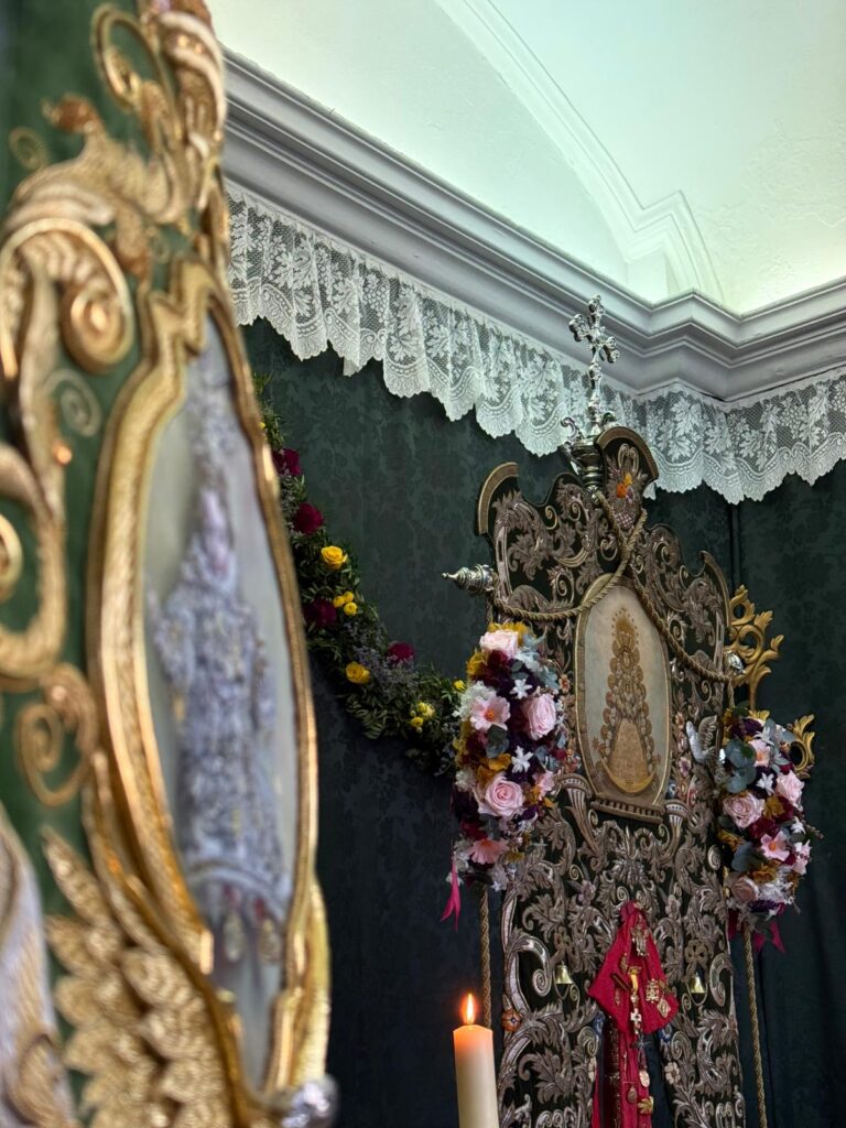 Esplendor y devoción se han reunido en la capilla, donde nuestro Simpecado lució majestuoso durante estos días de Peregrinación Extraordinaria. El altar ha lucido un exorno floral de especial delicadeza,