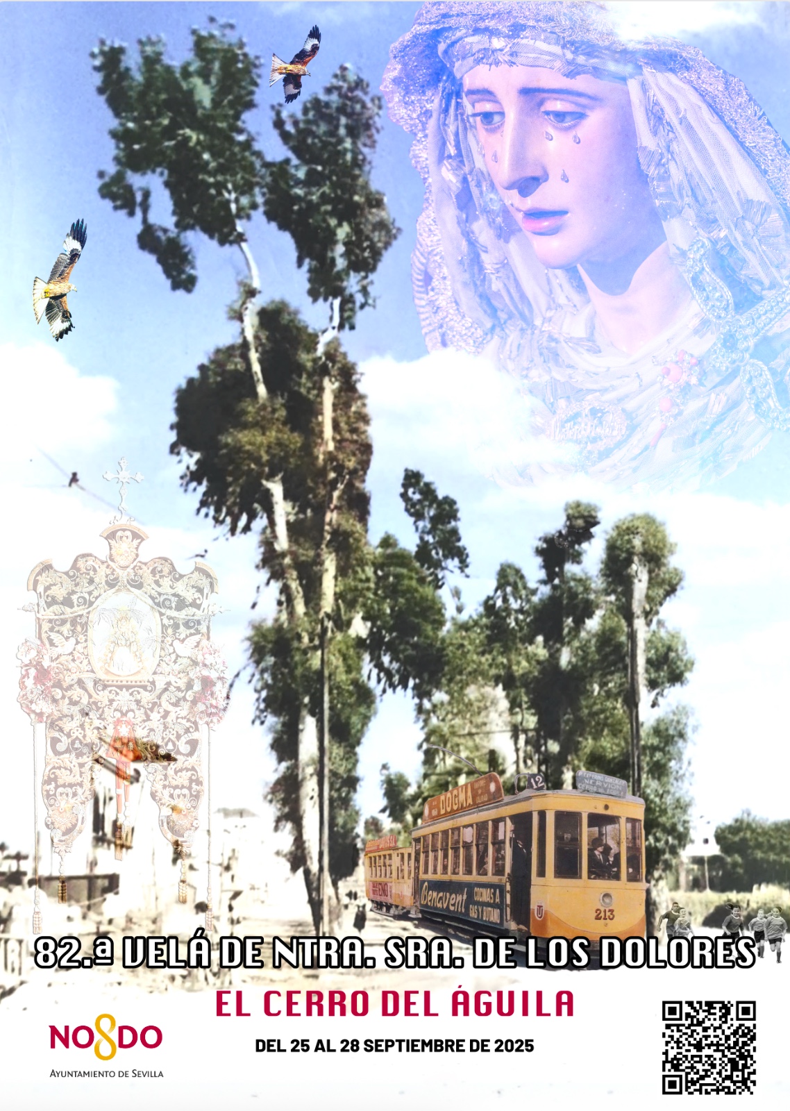 Ha sido presentado el cartel de la 82ª Velá de Ntra. Sra. de los Dolores (del 25 al 28 de septiembre), obra de D. Benito Rico. El acto se ha celebrado en el atrio de la parroquia, actuando como anfitrión N.H.D. Fco. Javier Brazo, Párroco y Director Espiritual de nuestra Hermandad. El mismo ha estado presidido por D. José Lugo Moreno, Delegado del Distrito Cerro-Amate, contando con la asistencia de representantes de las entidades y hermandades del barrio, entre los que se encontraba nuestro Hermano Mayor, Antonio Fernández Díaz.
